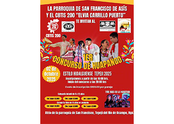 Invitamos a la población en general al Primer Concurso de Huapango Estilo Hidalguense Tepeji 2025, inscripciones el día del evento.