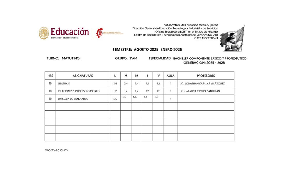 📌El receso para turno vespertino será de 2:45 p.m. a 3:15 p.m.