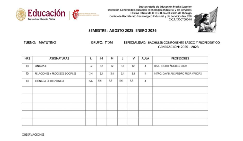 📌El receso para turno vespertino será de 2:45 p.m. a 3:15 p.m.