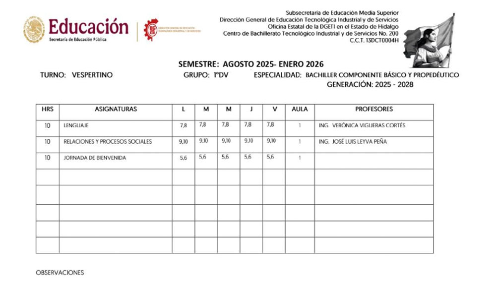 📌El receso para turno vespertino será de 2:45 p.m. a 3:15 p.m.