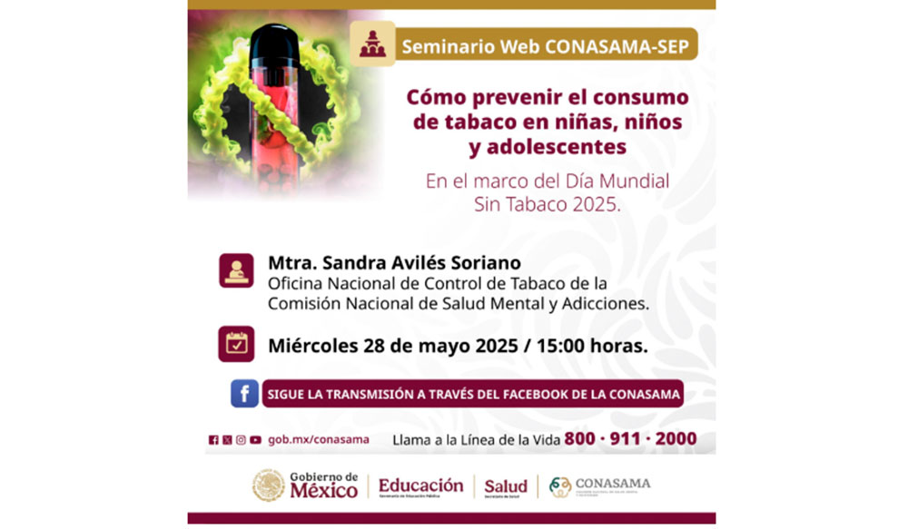 Les invitamos cordialmente a participar en el seminario web “Mitos y realidades de los vapeadores”, que se llevará a cabo el próximo miércoles 21 de mayo a las 15:00 h.