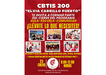 El CBTIS 200 “Elvia Carrillo Puerto”, a través del Programa Aula–Escuela–Comunidad, te invita a formar parte de su cierre de programa en el evento:
